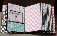 This was a really fun album to make and pretty easy it only has 5 pages but each page has like 3 pages on it, if that makes sense. It measures 4.5" x 6.25". The paper is the Fabulous collection from Authentique. I saw this on Ginger's blog My Sisters Scrapper she is amazing at mini albums.